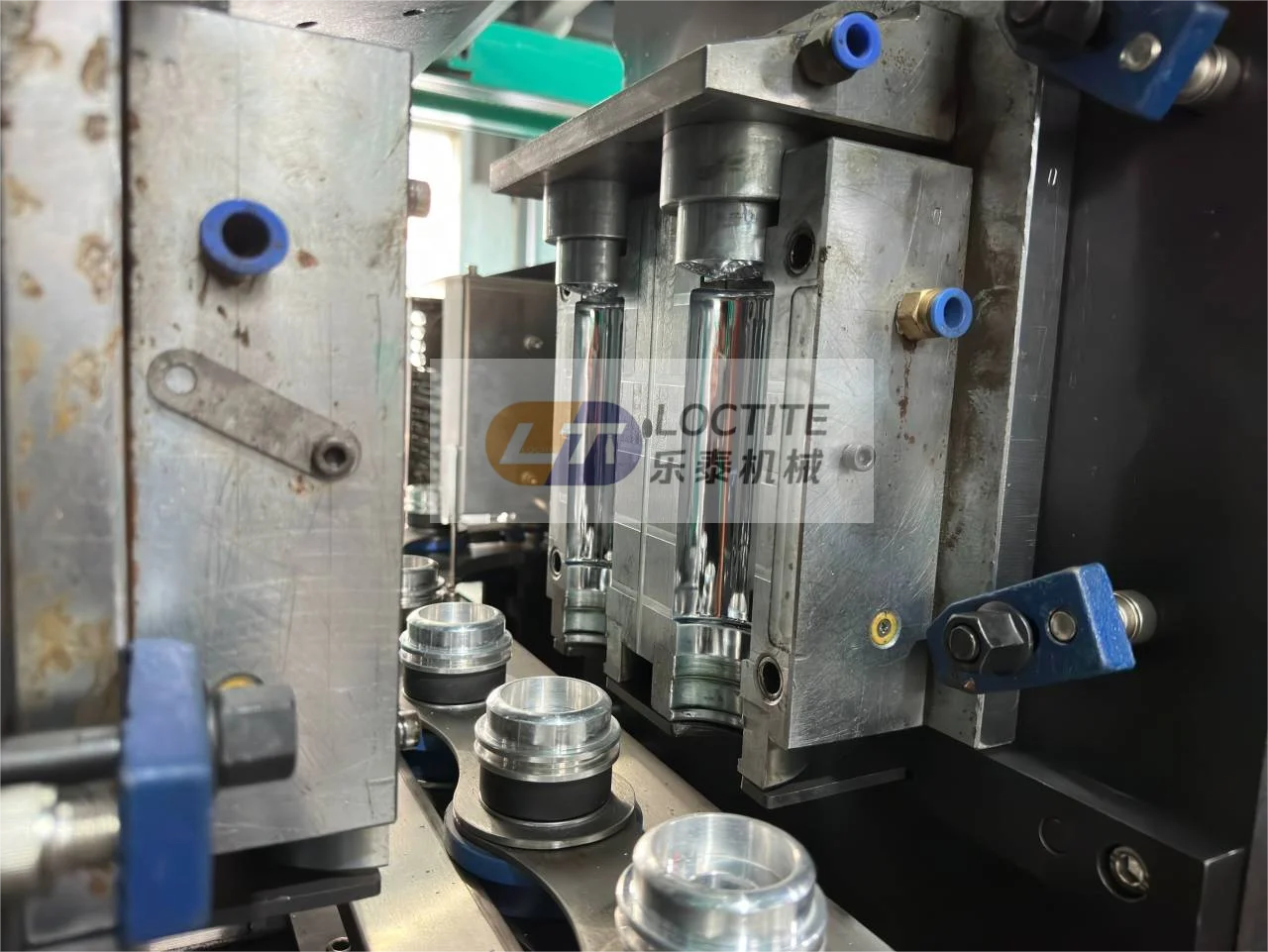 Taizhou huangyan Loctite machinery and mold factory supply PET bottle blow molding machine, extrusion blow molding machine,pet preform mold,caps mold,preform and caps,we can supply u full line from raw material to bottle.we have more then 10 year in this